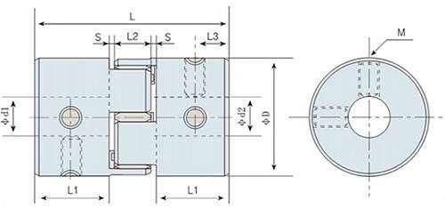| Model | φd1φd2 Max. Bore Diameter | φD | L | L1 | L2 | S | L3 | M | Wrench Torque ( N.M ) |