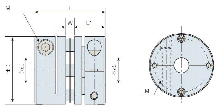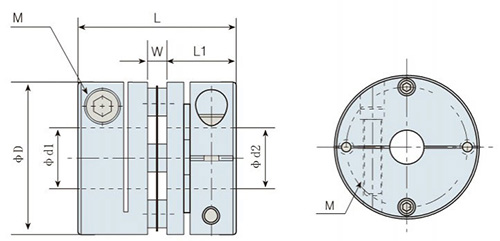 | Model | φd1φd2 Max. Bore Diameter | φD | L | W | L1 | M | Tightening Torque ( N.M ) |